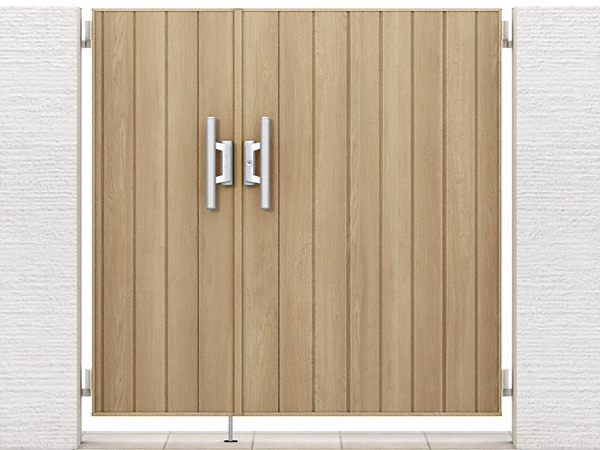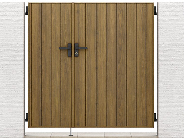 片開き門扉は勝手口などの設置にも便利で、簡単に防犯性を高めることができます。縦向きの模様が広く見えるようにになっており、どのご家庭にぴったりです。
