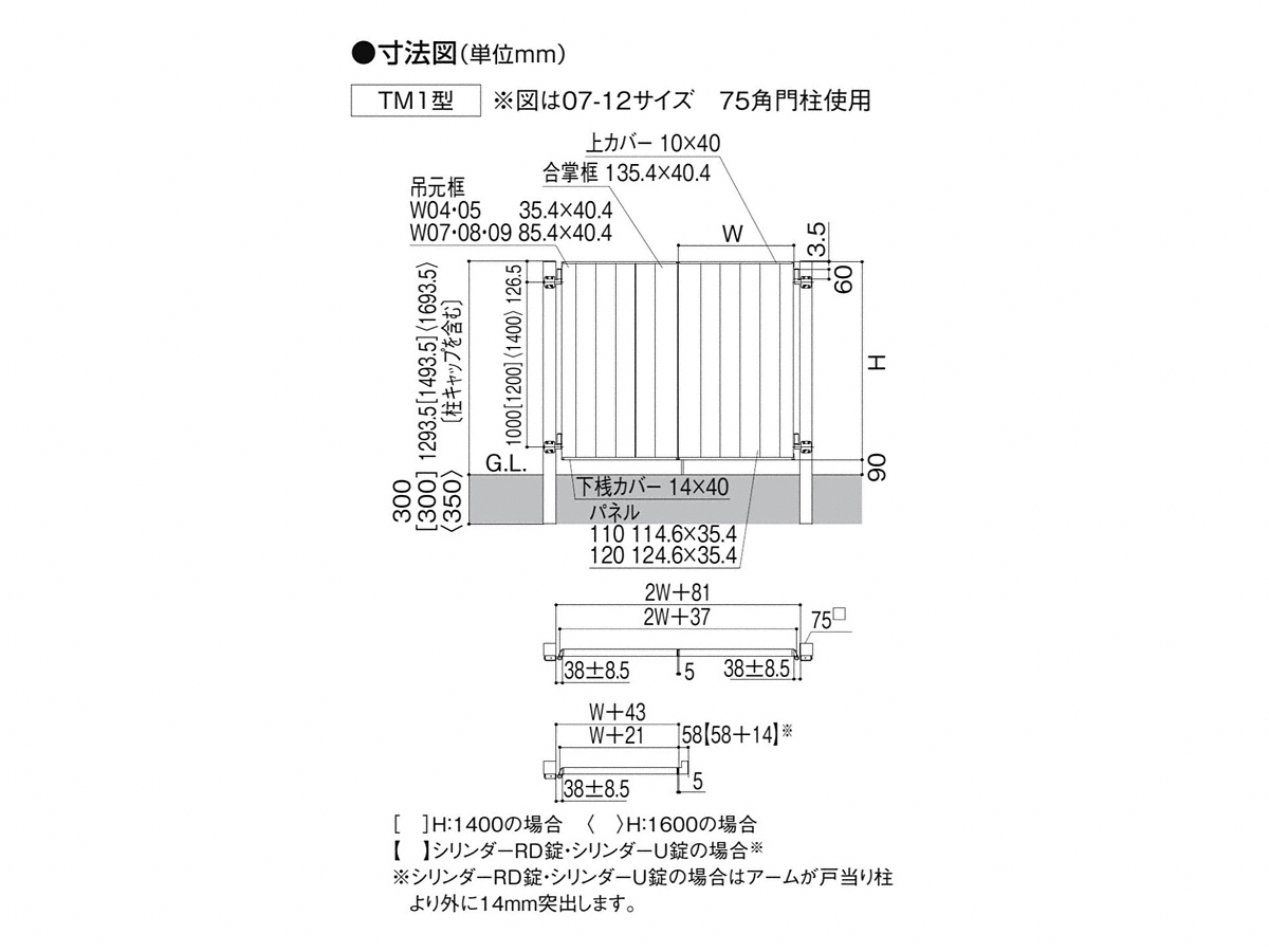開き門扉AA TM1型 片開き 柱使用 複合色